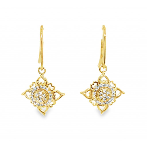 Van Cleef Inspired Diamond Drop Earrings in 10K Yellow Gold