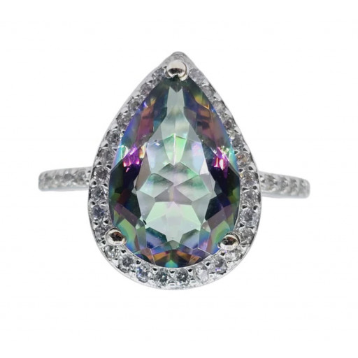 Teardrop Mystic Topaz Halo Ring in Italian Sterling Silver